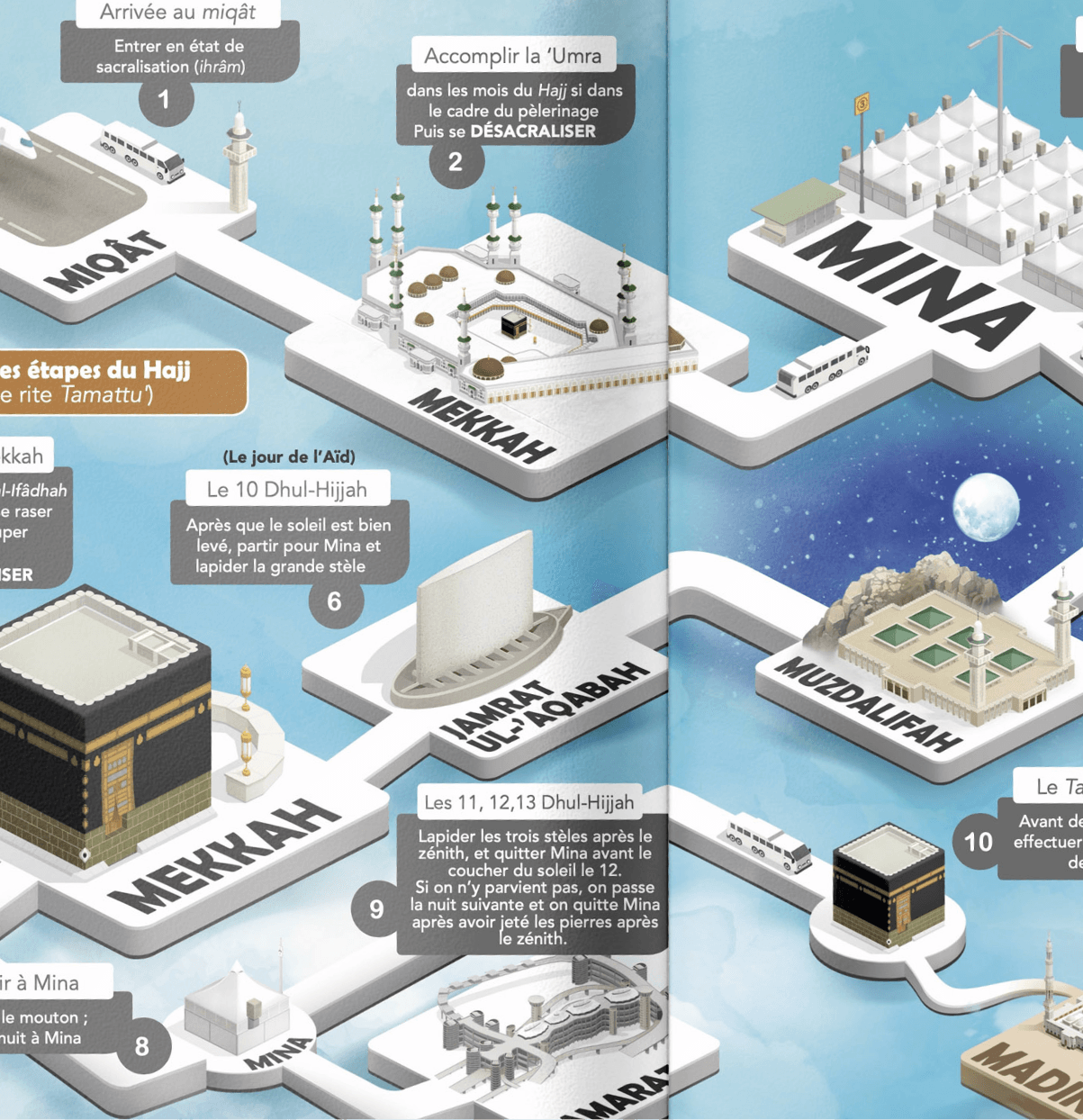 En bonus, retrouvez les plans des lieux saints et un recueil d’invocations en arabe, français et phonétique.
