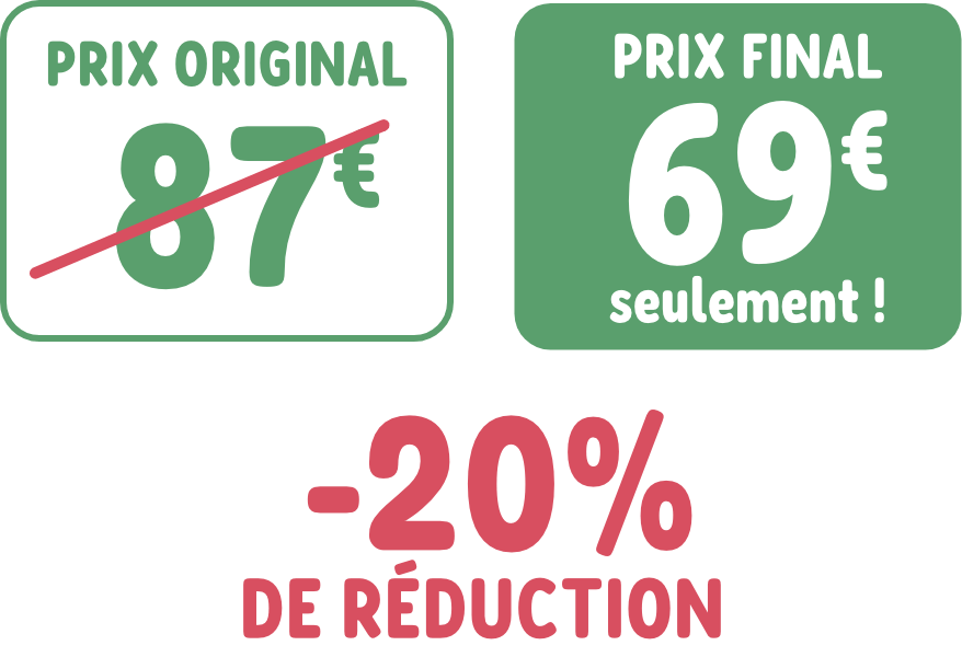 Vous bénéficiez de 25 % de réduction, soit 43 € d’économie